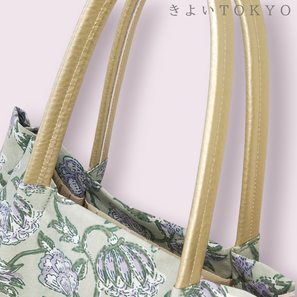 持ち手はゴールドの牛革。
